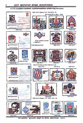 CATALOGUE " POSTAL STATIONERIES OF USSR «a CHESS» ". Contains the description and illustrations of all postal stationeries (envelopes and postal cards) of USSR on a theme "chess", including their versions. A format 145 x 210 mm or 105 x 148 mm. Volume 10 pages. Образец страницы каталога. * Sample of page of the catalogue.